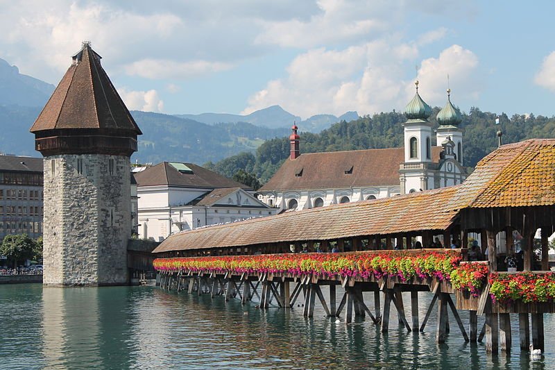 Die Kapellbrücke ist die älteste und die zweitlängste überdachte Holzbrücke Europas. Sie ist 202,90 Meter lang und wurde um das Jahr 1365 erbaut. Interessant sind die 111 dreieckigen Gemälde, welche sich im Giebel der Brücke befinden. Zu sehen sind Szenen der Schweizer Geschichte.